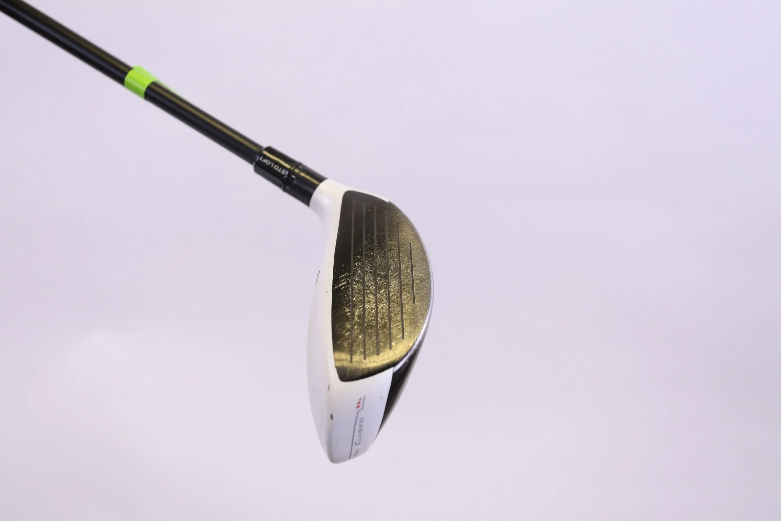 GOOD – GOOD- This TaylorMade wood is in good condition. There is average wear around the head and on the face of the club from play and storage. There are very small markings and scratches going along the shaft from regular handling and storage. The grip is in good condition with light wear from normal handling. Please refer to the pictures provided for more details.