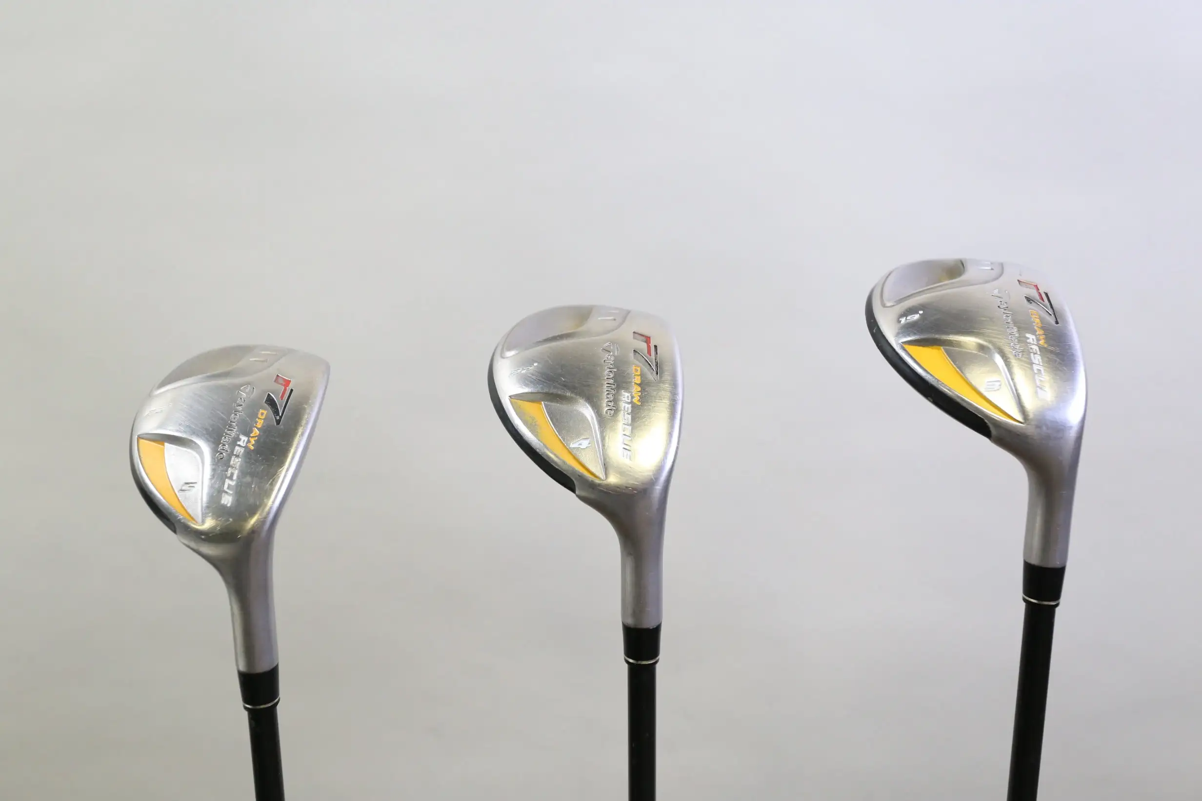 GOOD – This hybrid set is in good condition. There is average wear around the heads and on the faces of the clubs from regular use. There are very small markings and scratches along the shafts from normal use and storage. The grips are in good condition with some wear from regular use and storage. 19* – 40.5 inches, 22* – 40 inches, 25* – 39.5 inches. Please see pictures for more details.
